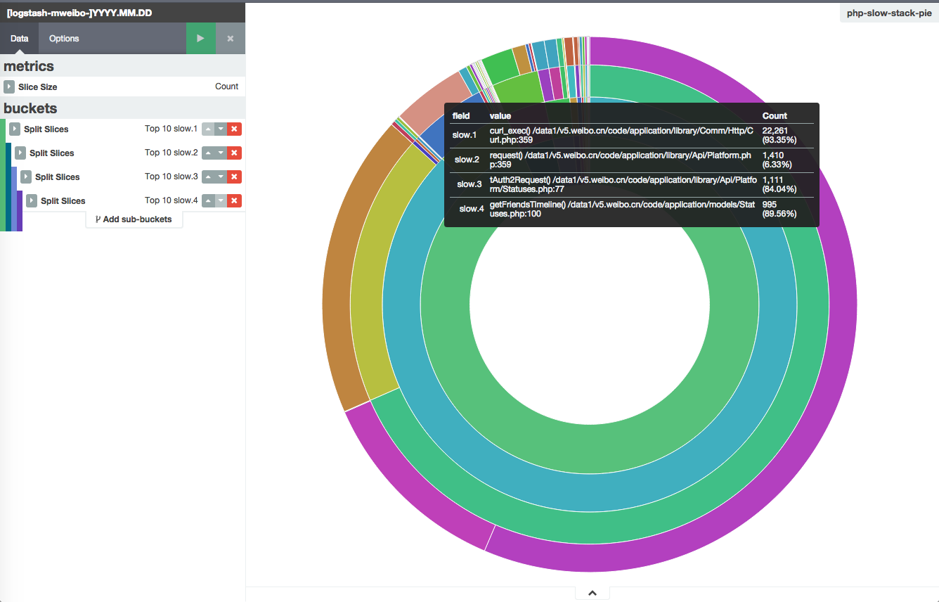 http://k4domain:5601/#/visualize/edit/php-slow-stack-pie?_g=()&_a=(filters:!(),linked:!t,query:(query_string:(query:'*')),vis:(aggs:!((id:'1',params:(),schema:metric,type:count),(id:'2',params:(field:slow.1,order:desc,orderBy:'1',size:10),schema:segment,type:terms),(id:'3',params:(field:slow.2,order:desc,orderBy:'1',size:10),schema:segment,type:terms),(id:'4',params:(field:slow.3,order:desc,orderBy:'1',size:10),schema:segment,type:terms),(id:'5',params:(field:slow.4,order:desc,orderBy:'1',size:10),schema:segment,type:terms)),listeners:(),params:(addLegend:!f,addTooltip:!t,defaultYExtents:!f,isDonut:!t,shareYAxis:!t,spyPerPage:10),type:pie))