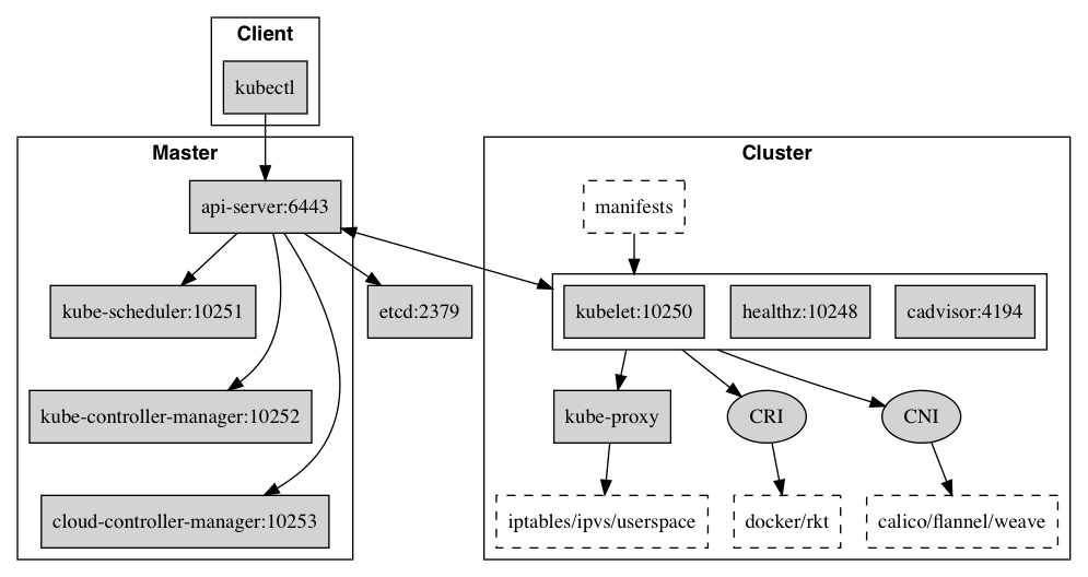 - kubelet 负责维持容器的生命周期,同时也负责 Volume(CVI)和网络(CNI)的管理;