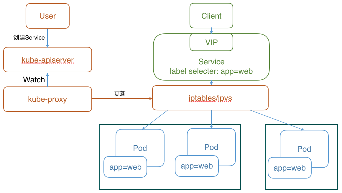 Service 是对一组提供相同功能的 Pods 的抽象,并为它们提供一个统一的入口。借助 Service,应用可以方便的实现服务发现与负载均衡,并实现应用的零宕机升级。Service 通过标签来选取服务后端,一般配合 Replication Controller 或者 Deployment 来保证后端容器的正常运行。这些匹配标签的 Pod IP 和端口列表组成 endpoints,由 kube-proxy 负责将服务 IP 负载均衡到这些 endpoints 上。