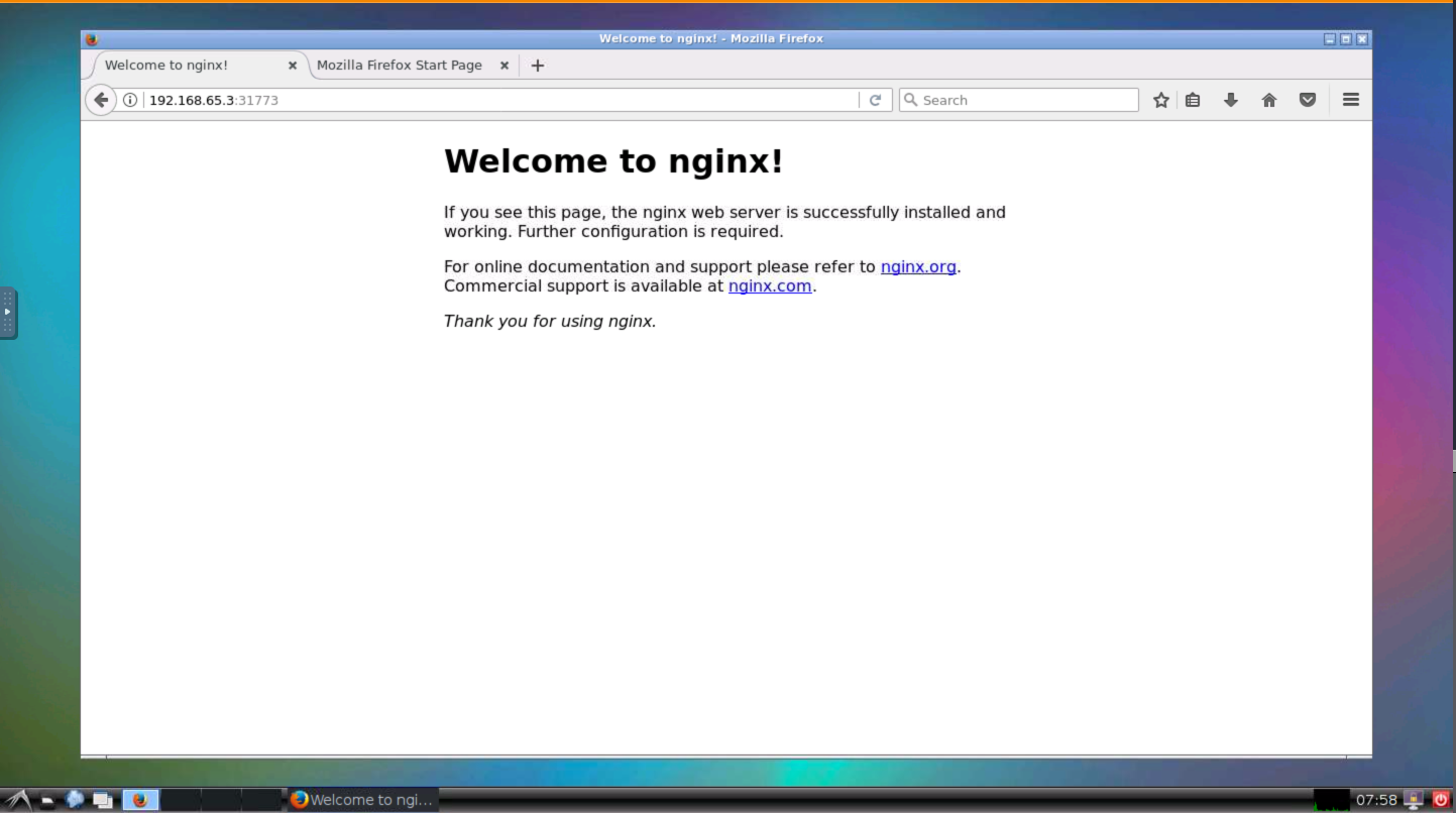 nginx 10.108.41.230 <nodes> 80:31773/TCP 5s
