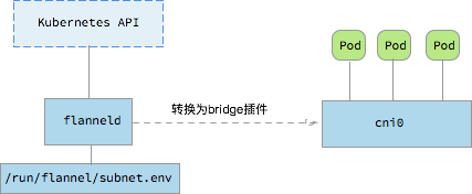 CNI flannel插件会将flannel网络配置转换为bridge插件配置,并调用bridge插件给容器netns配置网络。比如下面的flannel配置