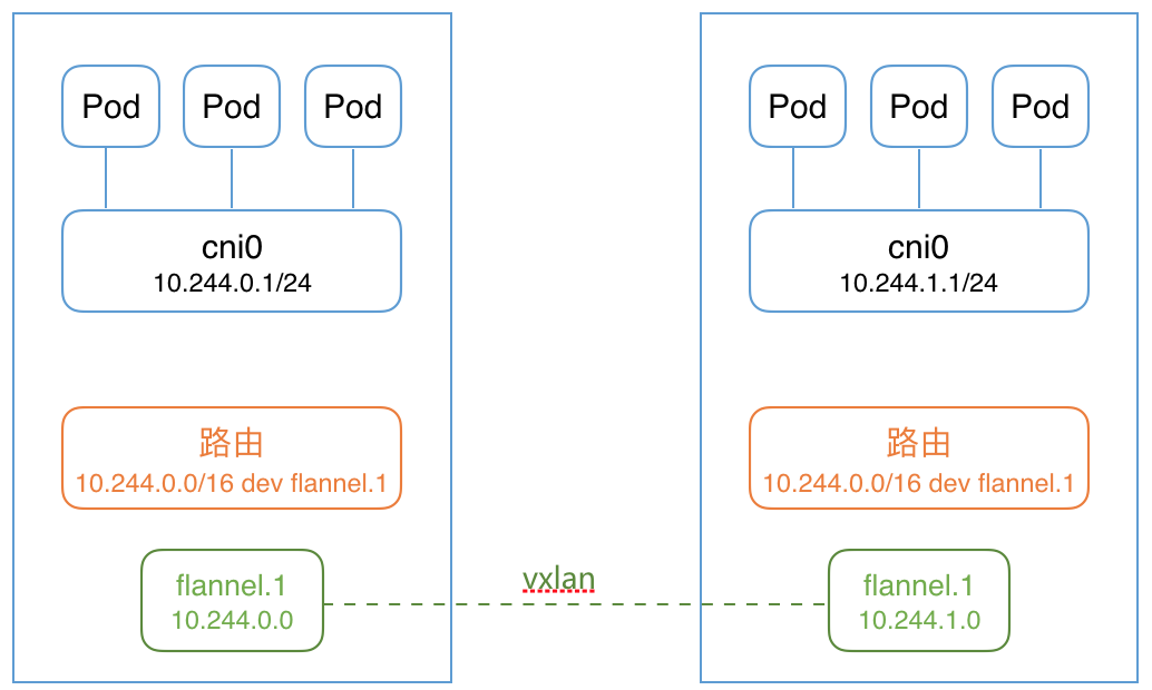 flanneld自动连接kubernetes API,根据node.Spec.PodCIDR配置本地的flannel网络子网,并为容器创建vxlan和相关的子网路由。