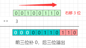 示例:把二进制数 100110 向右移 3 位。